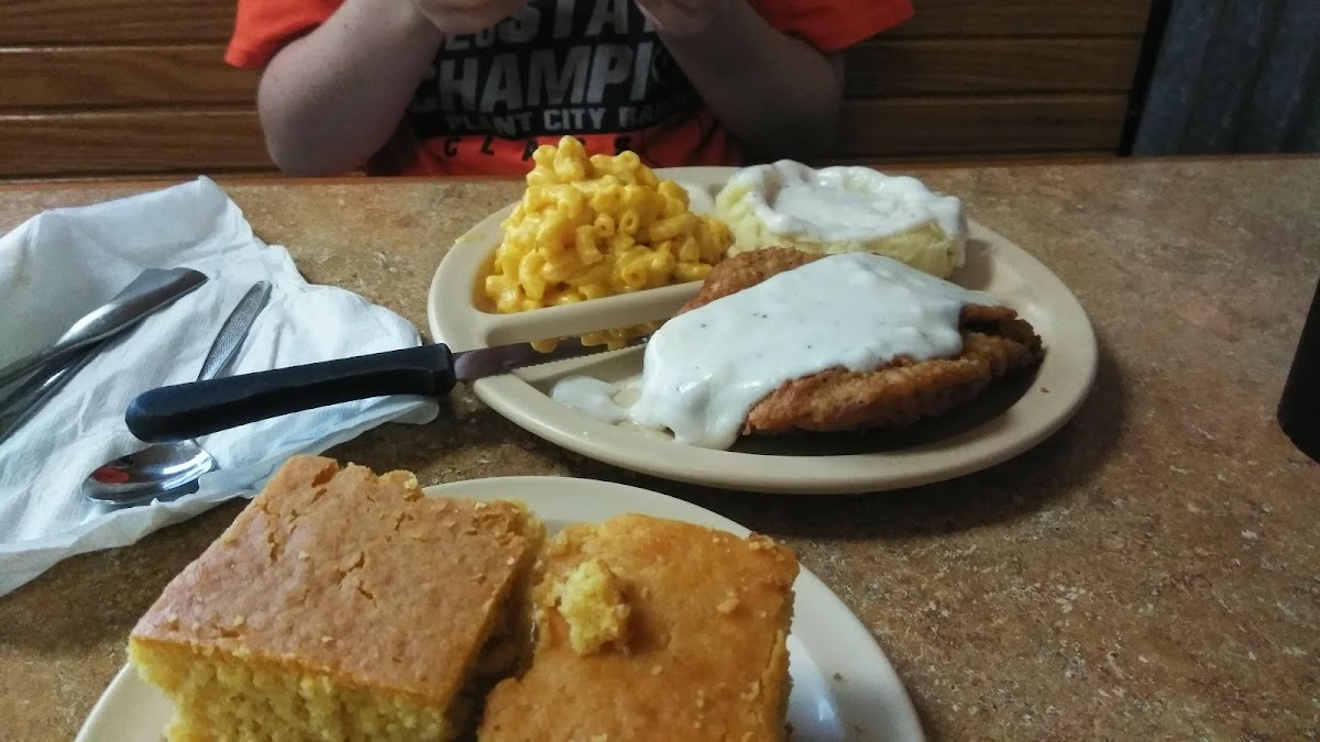 Nice little diner/cafe. Service was good. The food is a little over priced for what you get. A lot of what we got seemed like it was from a box or premade. The Mac and cheese was overcooked and bland. What little taste was like generic boxed. The Country Fried Steak had a weird taste. Catfish was good, as well as the Fried Okra. With tip we paid over $36 for 2 people. That was one breakfast and one dinner.